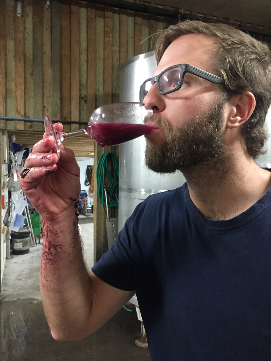 Alex had a lot of friends choosing corporate careers after high school; he didn’t know for sure what he wanted to do, but he knew it wasn’t that world. He had been enjoying brewing his own beer, heard about winemaking, and “thought it sounded interesting,” and he’d “give it a shot and find out.” Once he got into school, he found he actually really enjoyed making wine.